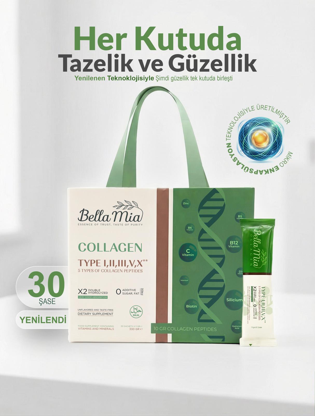 Bella Mia Collagen %100 Saf ve Doğal 5 Tip Kolajen, Vitamin ve Mineral İçeren Diyet Takviyesi